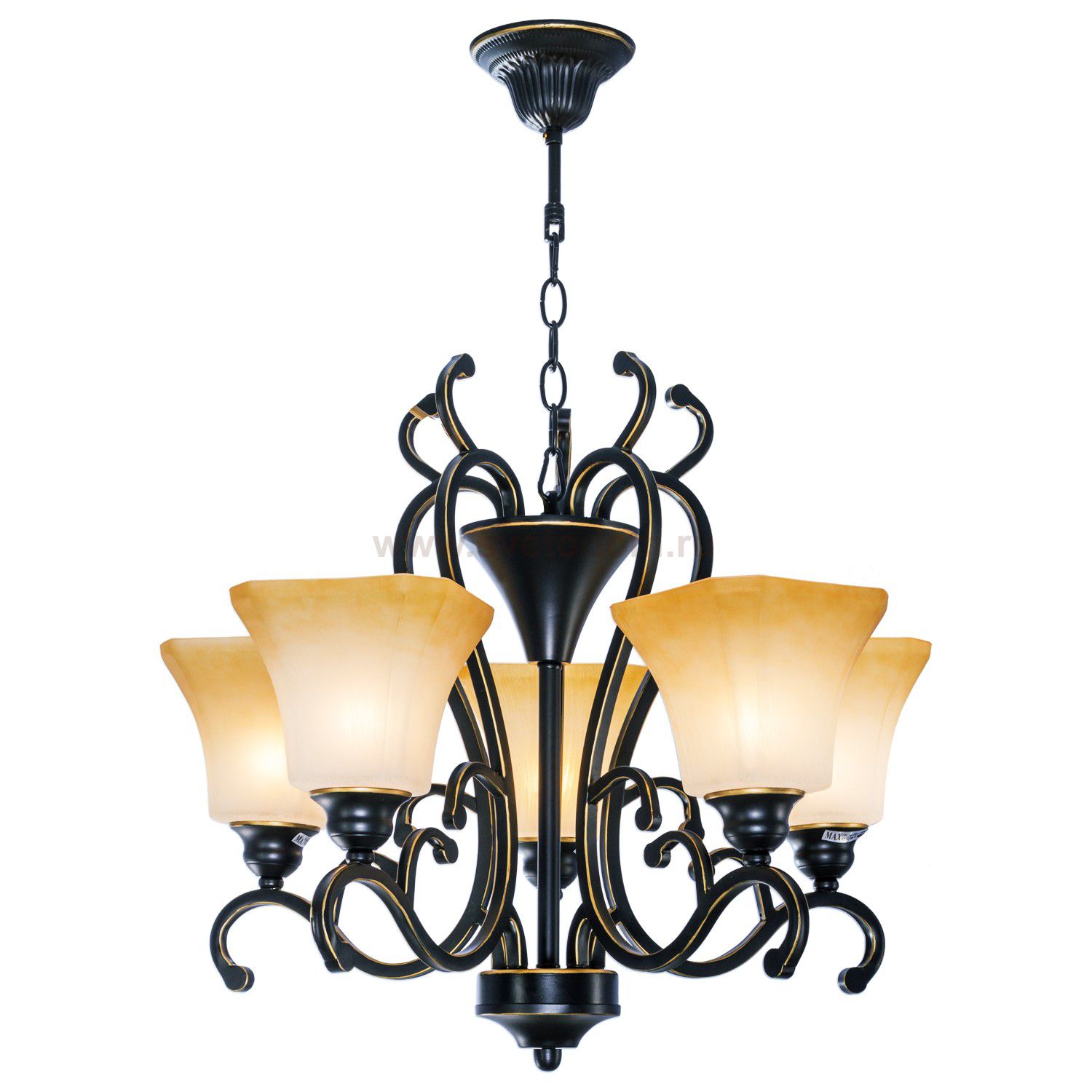 Люстра классическая 3765/5BR BN от бренда ЭкономСвет. Каркас выполнен из материала металл; цвета: коричневый и золото. Плафоны (светорассеиватели) выполнены из материала стекло, цвет бежевый. Цоколь E27 рассчитан на лампы максимальной мощности до 60 Вт, а максимальная площадь освещения составит до 11 м?.
