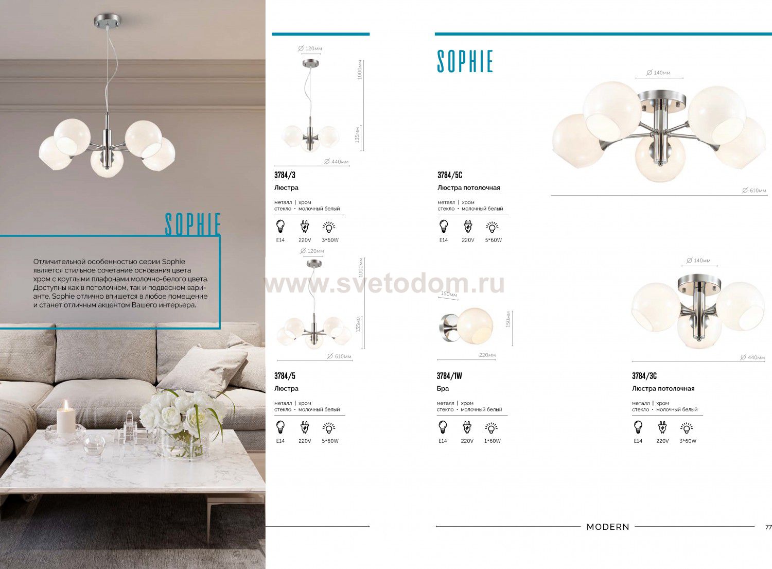 Отличительной особенностью линии Sophie является стильное сочетание основания цвета хром с круглыми плафонами молочно - белого цвета. Доступны как в потолочном, так и подвесном варианте. Sophie отлично впишется в любое помещение и станет отличным акцентом Вашего интерьера.