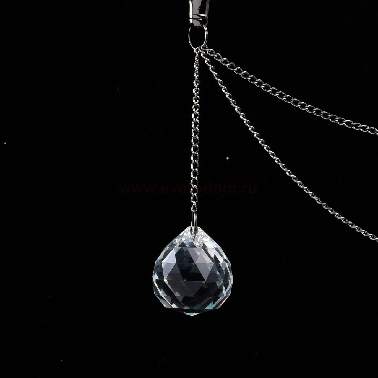 Металлическое основание цвета никеля, текстильные абажуры белого цвета, декоративные подвески из тонких цепочек в цвет основания с хрусталём Место применения