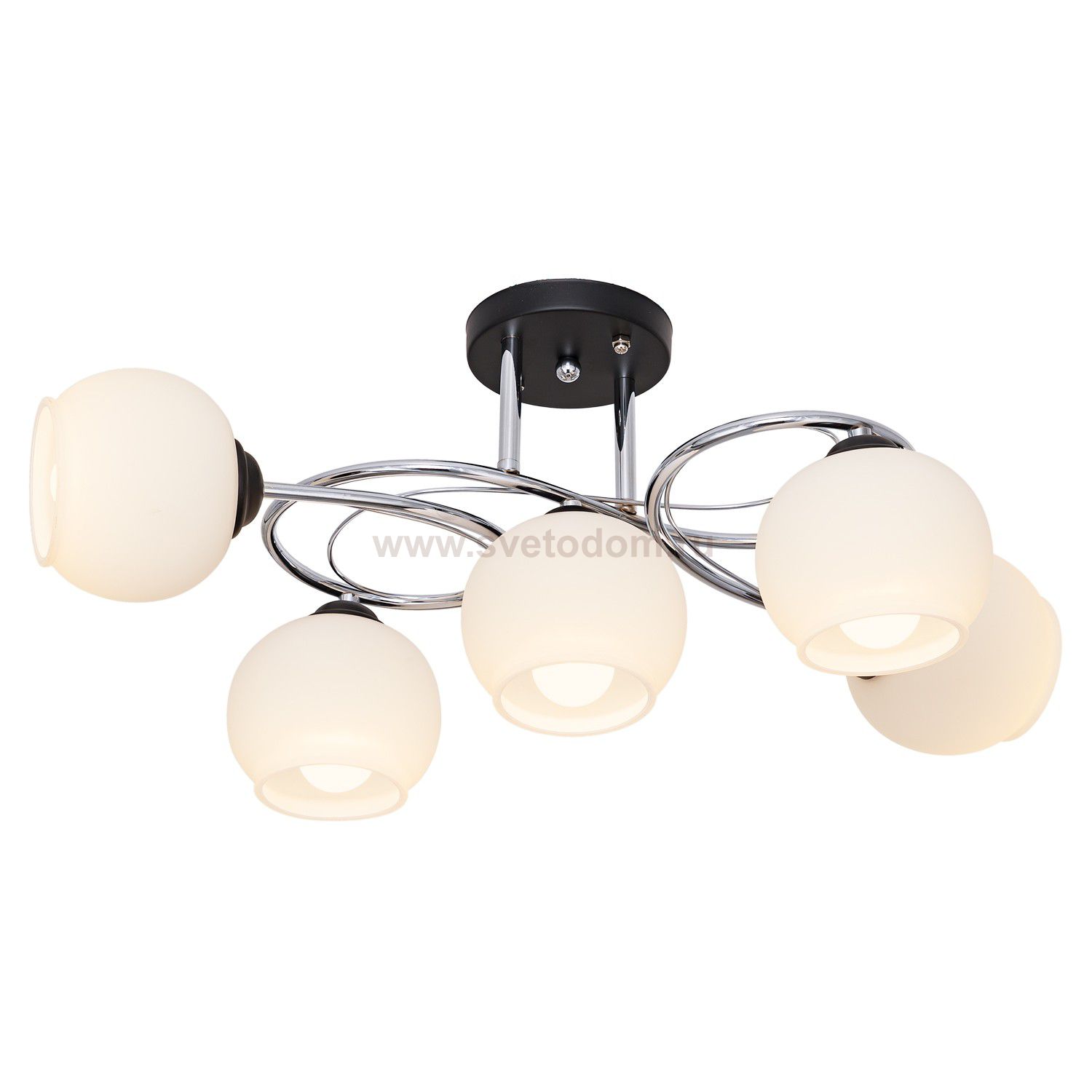 Потолочный светильник 380/5CR+BK WT от бренда ЭкономСвет. Каркас выполнен из материала металл, цвет хром, черный. Плафоны (светорассеиватели) выполнены из материала стекло, цвет белый. Цоколь E27 рассчитан на лампы максимальной мощности до 60 Вт, а максимальная площадь освещения составит до 11 м?.