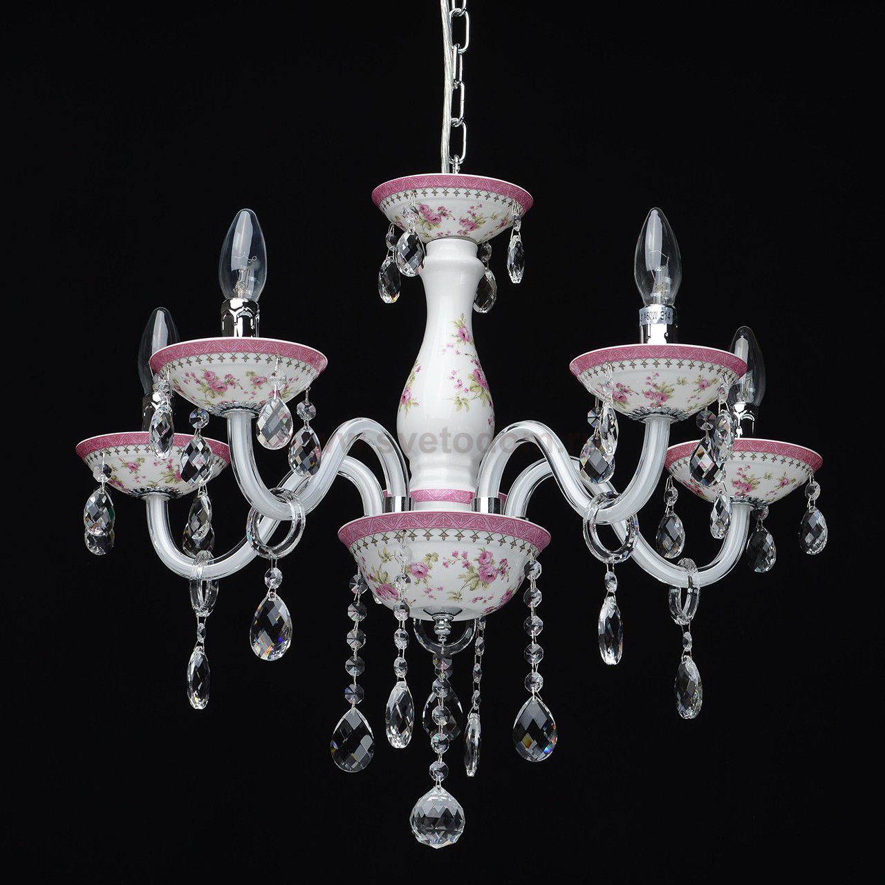 Описание модели 381010905: Неповторимый внешний вид светильника из коллекции Нимфа подходит для ценителей уюта и утонченной классики. Он органично впишется в интерьеры, оформленные в стилях прованс или эклектики. Металлическое хромированное основание декорировано керамическими элементами с ручной росписью, стеклянные рожки окрашены изнутри белой краской. Светильник из коллекции Нимфа имеет выразительные хрустальные подвески, которые красиво играют радужными бликами.