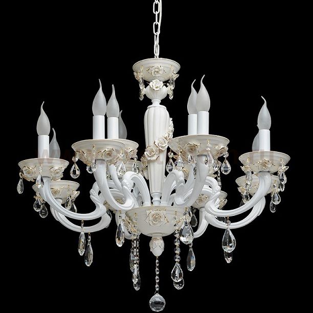 Металлическое основание, декоративные элементы из керамики белого цвета с золотом, подвески из хрусталя Преимущества модели