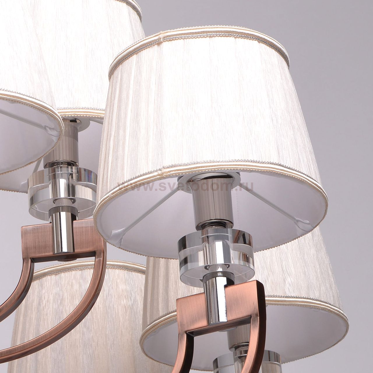 Металлическое основание медного цвета, декоративные элементы из хрусталя, текстильные абажуры Место применения