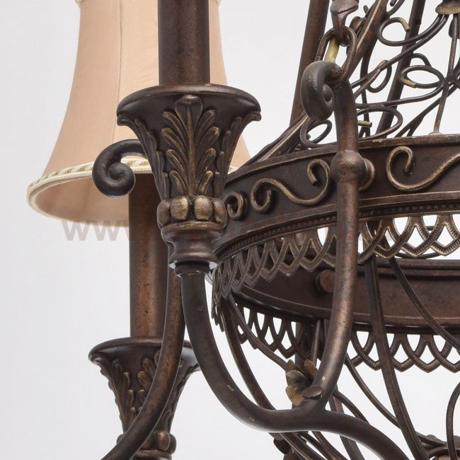 Описание модели 389010106: Коллекция Магдалина выделяется особой формой основания и эффектным декором. Светильник щедро декорирован растительным орнаментом из кованого металла. Мягкий свет, торжественный вид и внушительные габариты позволяют располагать светильник в строгих кабинетах, приёмных залах и в уютных просторных столовых.