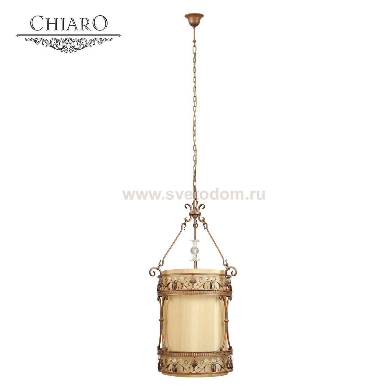 Кованое металлическое основание, текстильный абажур, декоративные подвески из хрусталя Материал плафона