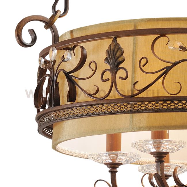 Кованое металлическое основание, текстильный абажур, декоративные подвески из хрусталя Материал плафона