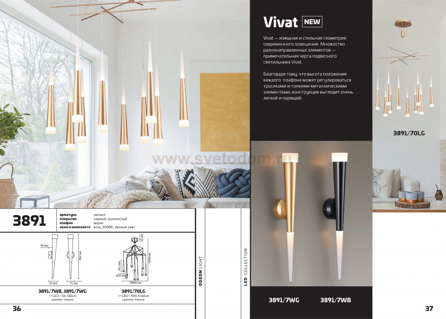 3891/7WG L-VISION ODL20 177 золотистый /металл Настенный светильник LED 3000K 7W 220V VIVAT Штрих-код