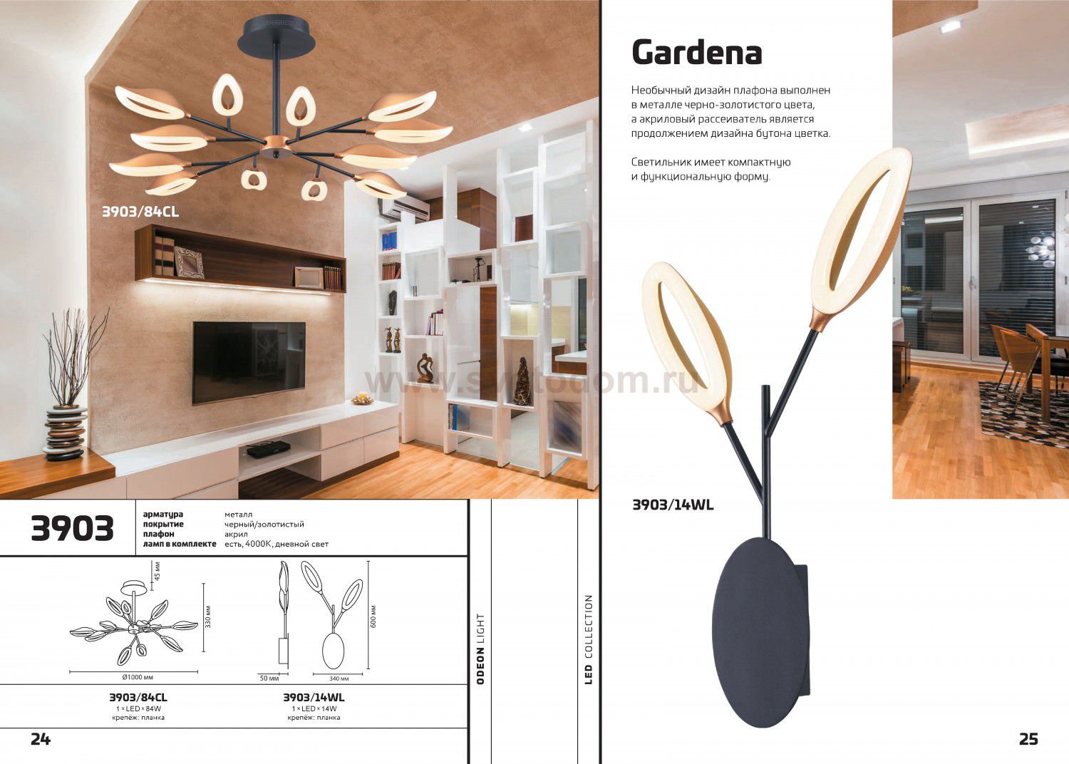 Необычный дизайн плафона выполнен в металле черно - золотистого цвета, а акриловый рассеиватель является продолжением дизайна бутона цветка. Светильник имеет дизайн диковинного цветка, и одновременно компактную и функциональную форму,