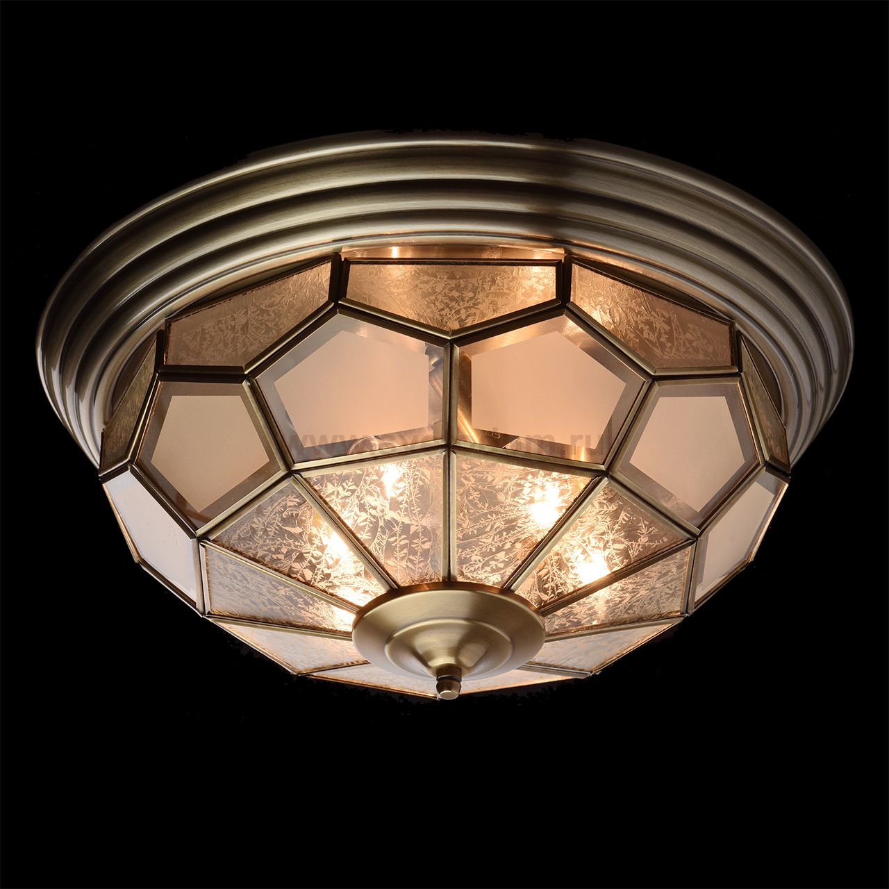 Основание из латуни, стекло с декоративным орнаментом Материал плафона