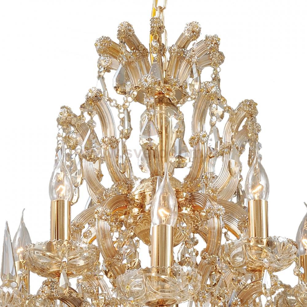 Металлическое основание цвета золота, декоративные элементы из стекла и хрустальные подвески цвета золотистого топаза Материал плафона