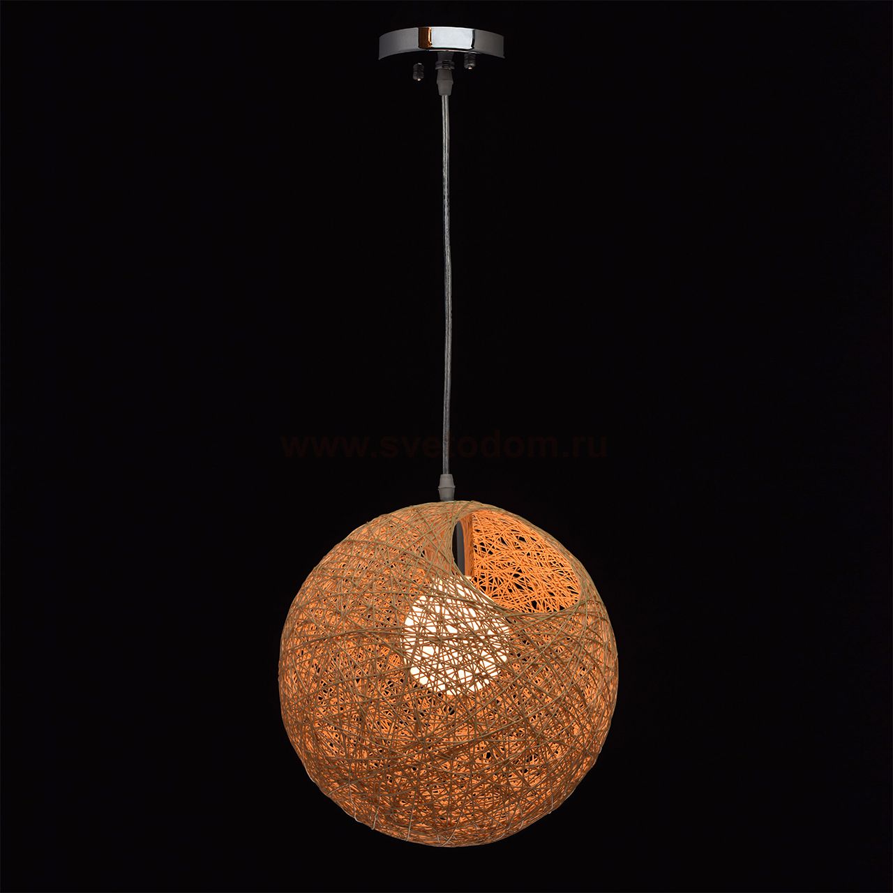 Описание модели 407012401: Отличная идея для освещения эко-пространства! Сферическую форму оживляет "окошко" в конструкции абажура, которое несёт в себе не только эстетическую, но и функциональную нагрузку для замены лампочки. Интересное воздушное плетение натурального материала пр
