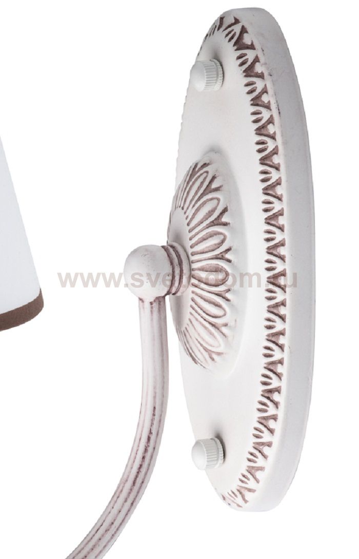 Описание модели 419020901: Приятная цветовая гамма, отточенные детали, резной декор – всё это делает бра из коллекции «Августина» достойным украшением интерьера. Металлическое основание выполнено в трендовом оттенке какао с молоком. Подчеркнутый эффект состаренности основания выгодно смотрится на контрасте с белыми тканевым абажуром, декорированым кантом цвета насыщенного какао. Источник света украшен ажурной чашей, придающей особую живописность всей композиции.