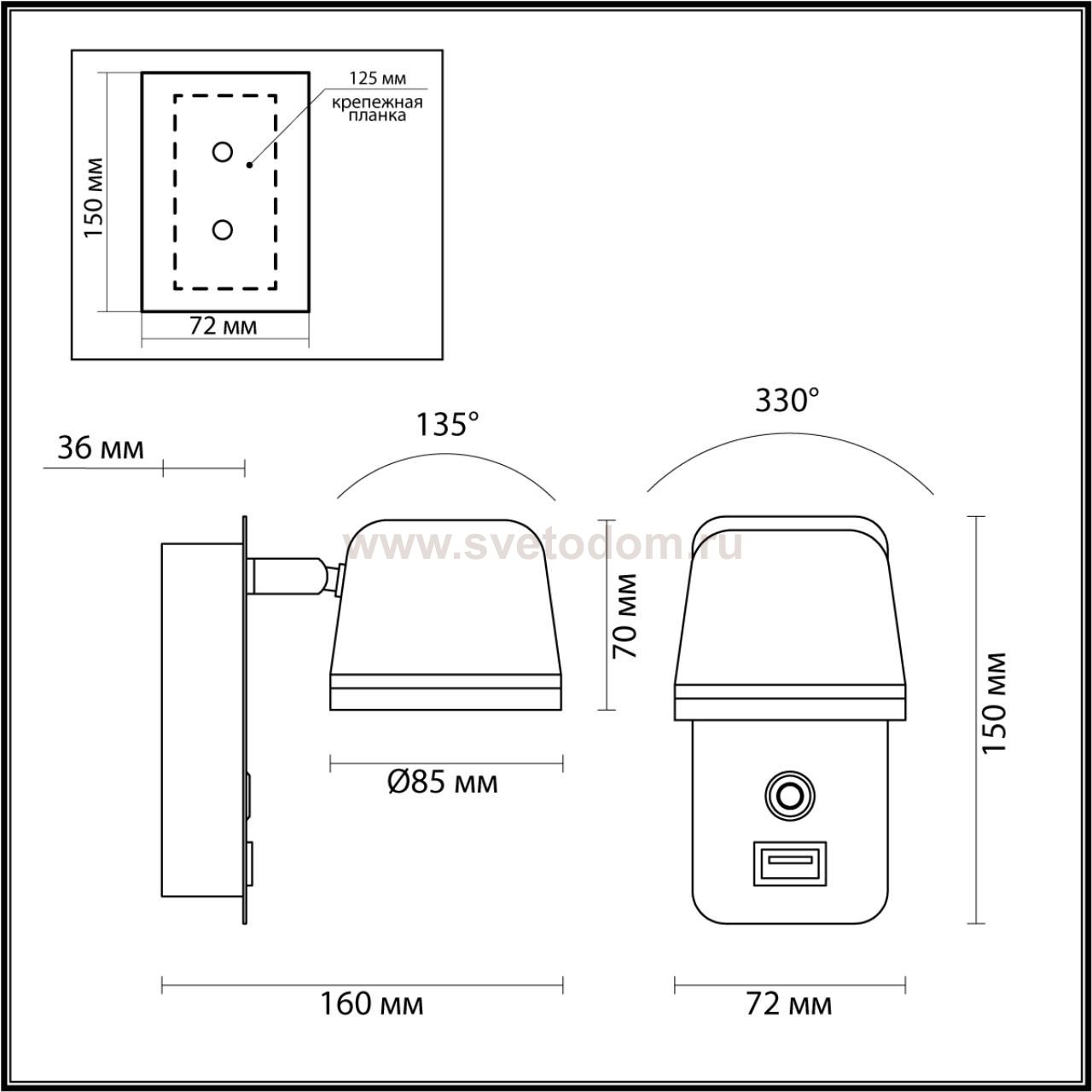 4299/5WL HIGHTECH ODL22 227 черный/металл Настенный светильник IP20 c USB зарядкой c выкл. LED 7W 380Лм 3000-4000-6000K BANKS Штрих-код