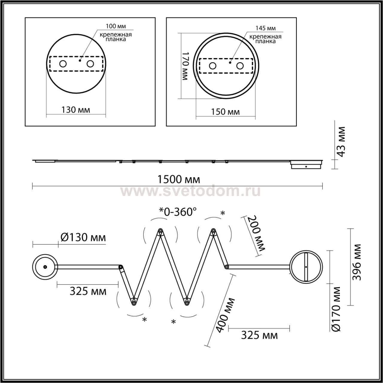 4302/36WL HIGHTECH ODL22 91 черный/металл Настенный светильник IP20 LED 36W 2285Лм 3000K ZIP Штрих-код
