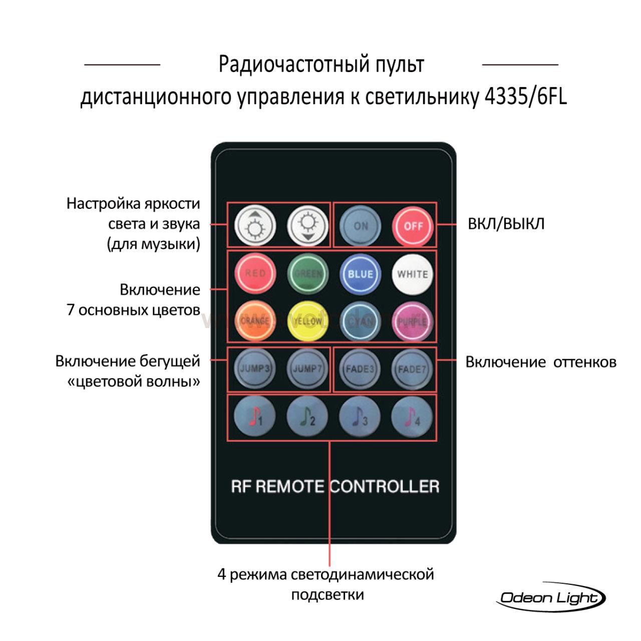 4335/6FL HIGHTECH ODL22 78 чёрный Напольный светильник c пультом Д/У IP20 LED 6W RGBW 1125Лм 3000K FILLINI Штрих-код