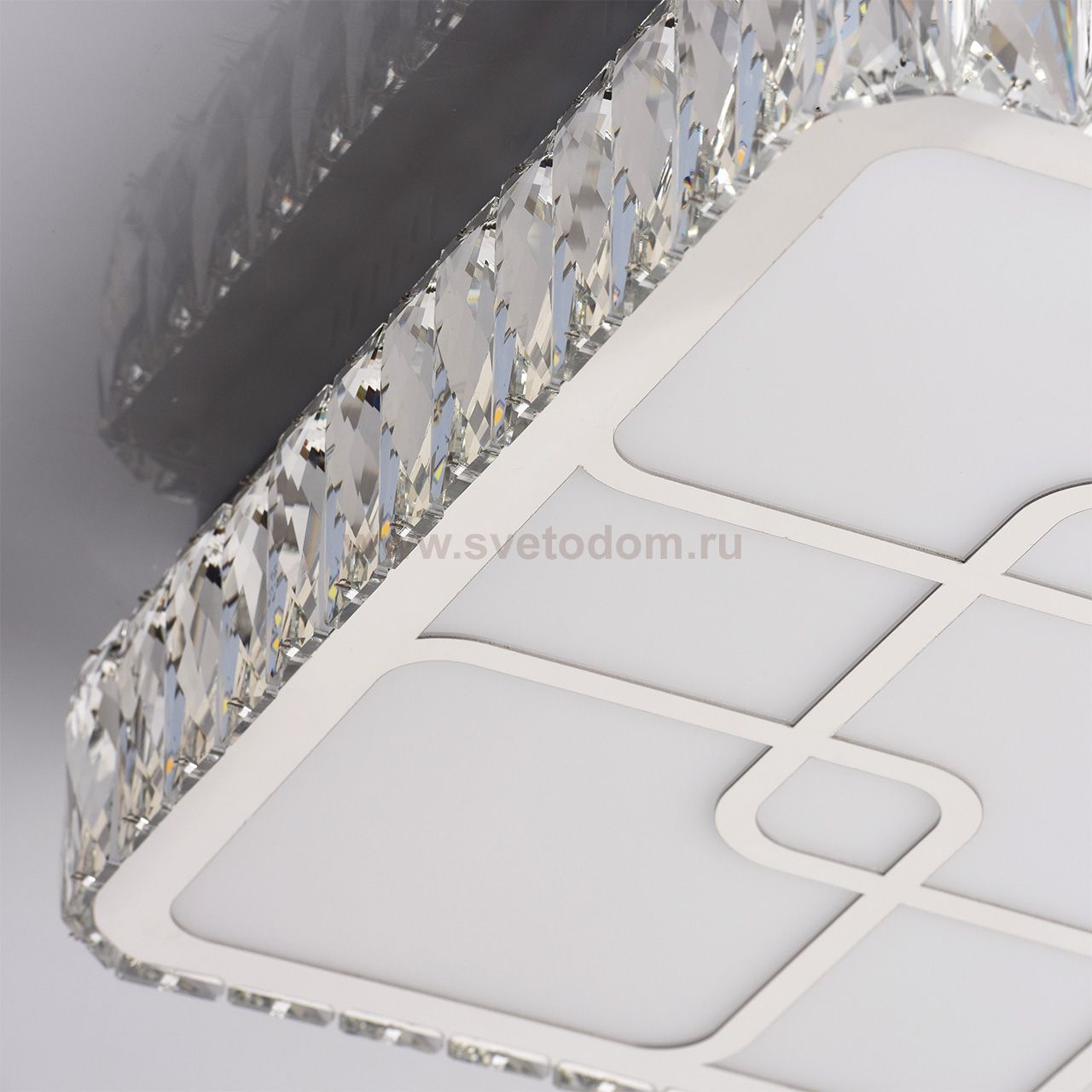 Описание модели 437012402: Модный дизайн, чёткие геометрические линии и драгоценный блеск – подтверждение статуса и вкуса обладателей люстры из коллекции «Кларис». Глянцевое металлическое основание цвета серебра гармонично сочетается с плоскими плафонами из белого матового акрила, благодаря чему создается эффектный дуэт. Завершает композицию окантовка из крупного хрусталя, придающая гламурный блеск и сияние. Этот потолочный светильник имеет форму двух видов – округлую и квадратную со скругленными углами, дает мягкое освещение, прекрасно подходит для стандартных потолков.