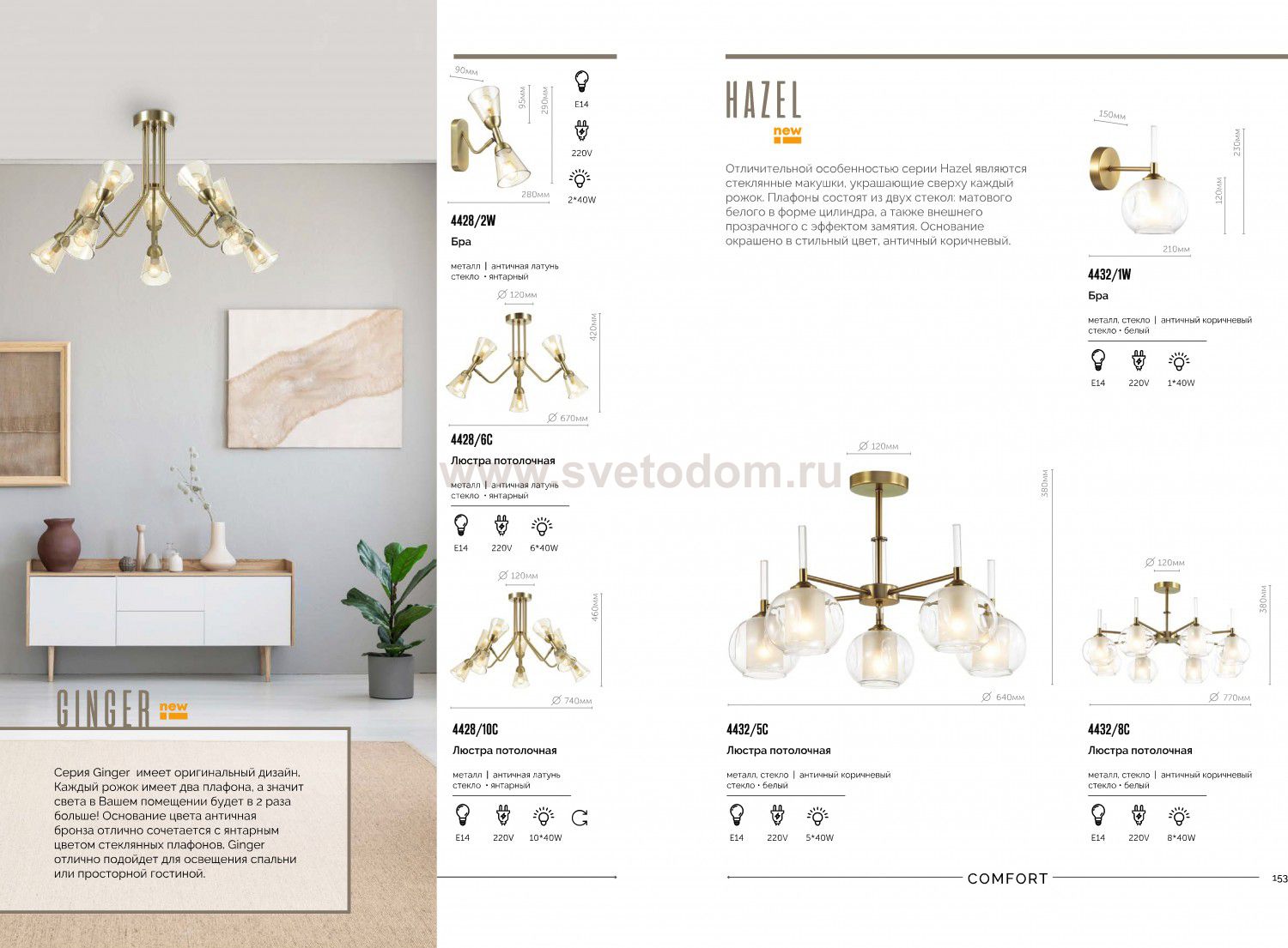 Линия Ginger имеет оригинальный дизайн. Каждый рожок имеет два плафона, а значит света в Вашем помещении будет в 2 раза больше! Основание цвета античная бронза отлично сочетается с янтарным цветом стеклянных плафонов. Ginger отлично подойдет для освещения спальни или просторной гостиной.