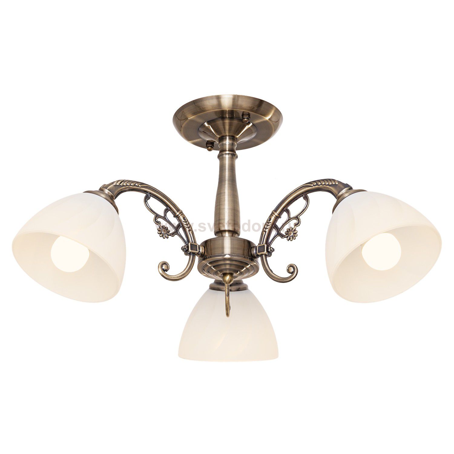 Потолочный светильник 443/3AB WT от бренда ЭкономСвет. Каркас выполнен из материала металл, цвет античная бронза. Плафоны (светорассеиватели) выполнены из материала стекло, цвет белый. Цоколь E27 рассчитан на лампы максимальной мощности до 60 Вт, а максимальная площадь освещения составит до 7 м?.
