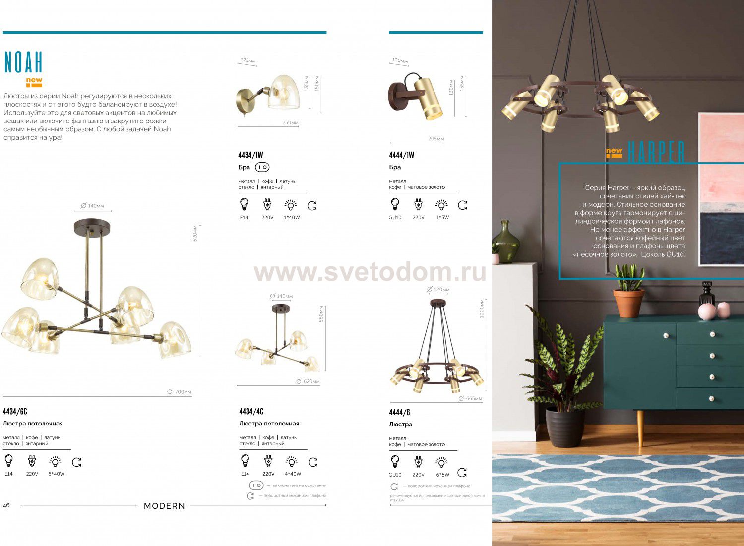 4434/1W MODERNI LN20 171 коричневый, латунь, стекло Бра с выключателем E14 1*40W 220V NOAH Штрих-код