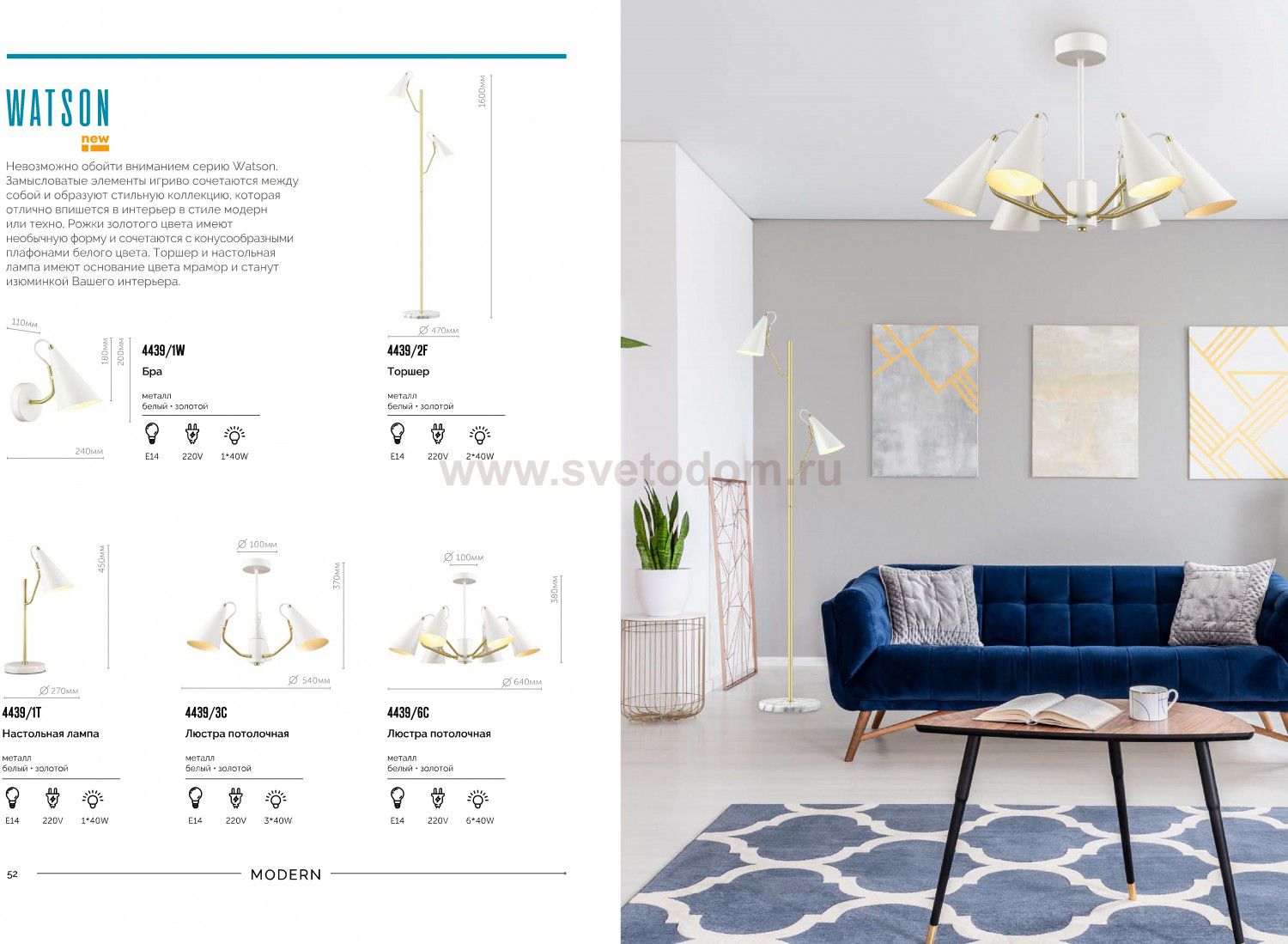 4439/1W MODERNI LN20 138 белый, золотой Бра E14 1*40W 220V WATSON Штрих-код