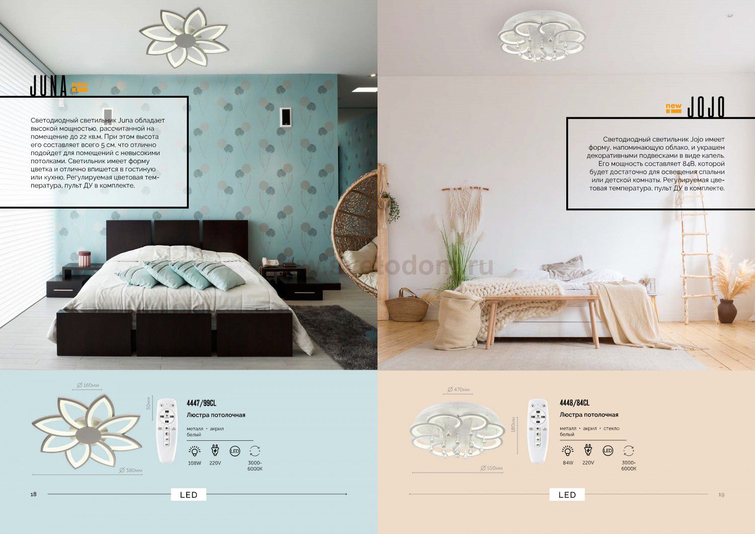 Светодиодный светильник линии Jojo имеет форму, напоминающую облако, и украшен декоративными подвесками в виде капель. Его мощность составляет 84В, которой будет достаточно для освещения спальни или детской комнаты. Регулируемая цветовая температура, пульт ДУ в комплекте.