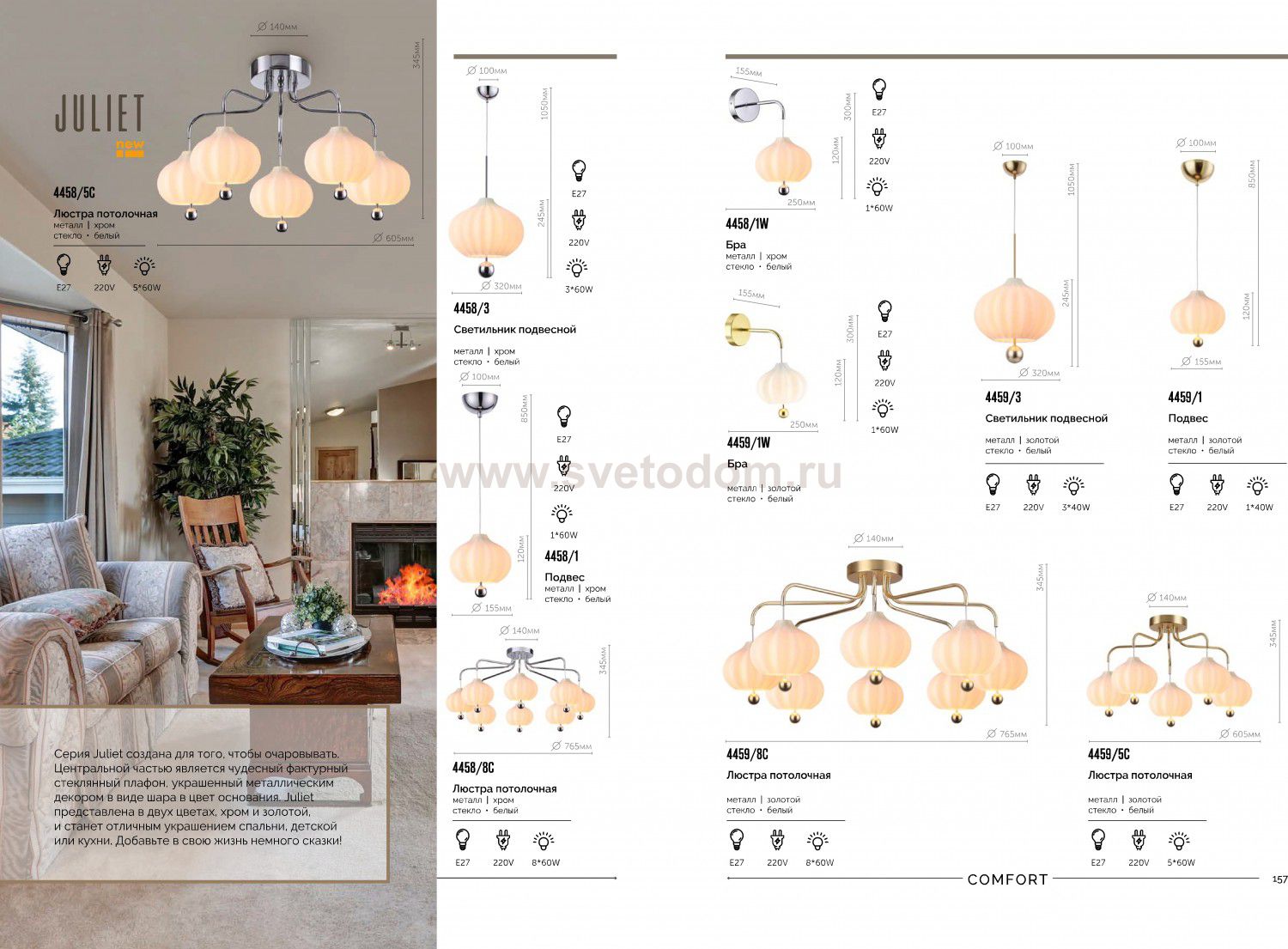 4458/1W COMFI LN20 084 хром, белый Бра E27 1*60W 220V JULIET Штрих-код