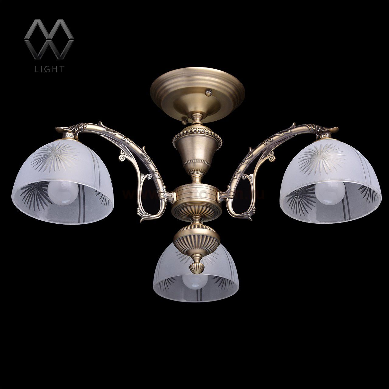 Металлическое основание цвета античной бронзы, стеклянные плафоны с резным рисунком. Материал плафона