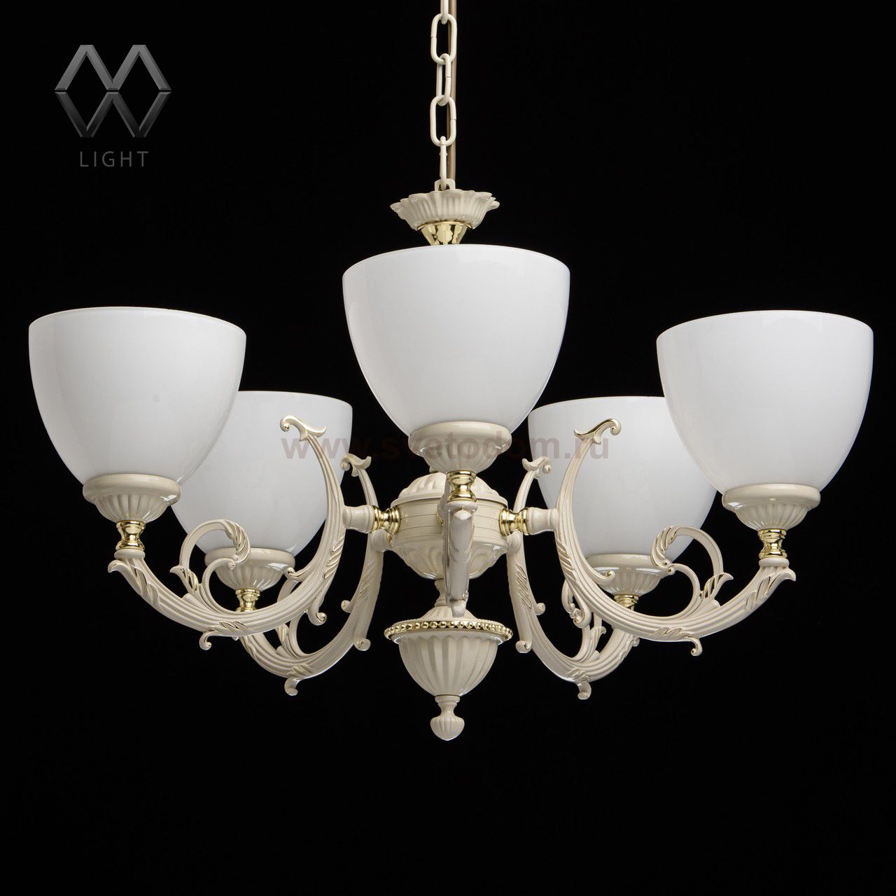 Арматура светильника выполнена из сплава металла и окрашена в цвет слоновой кости с золотой краской. Плафоны выполнен из стекла, окрашенного в массе в белый цвет. Дополнительно