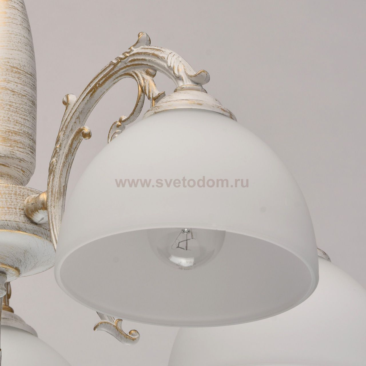 Люстра из коллекции «Ариадна» выполнена в стиле легкой ковки, благодаря чему светильник выглядит особенно оригинально. Молочно-белое основание из металла дополнено эффектом патины в цвет золота, что привнесет в обстановку комнаты дух благородной старины. Необычное основание выгодно сочетается с традиционными, направленными вниз плафонами из матового белого стекла. Несмотря на свою кажущуюся простоту, они придают люстре особый колорит, и освежают интерьер ослепительной белизной. Завершает композицию изящная деталь – подвес из прозрачного декоративного стекла.