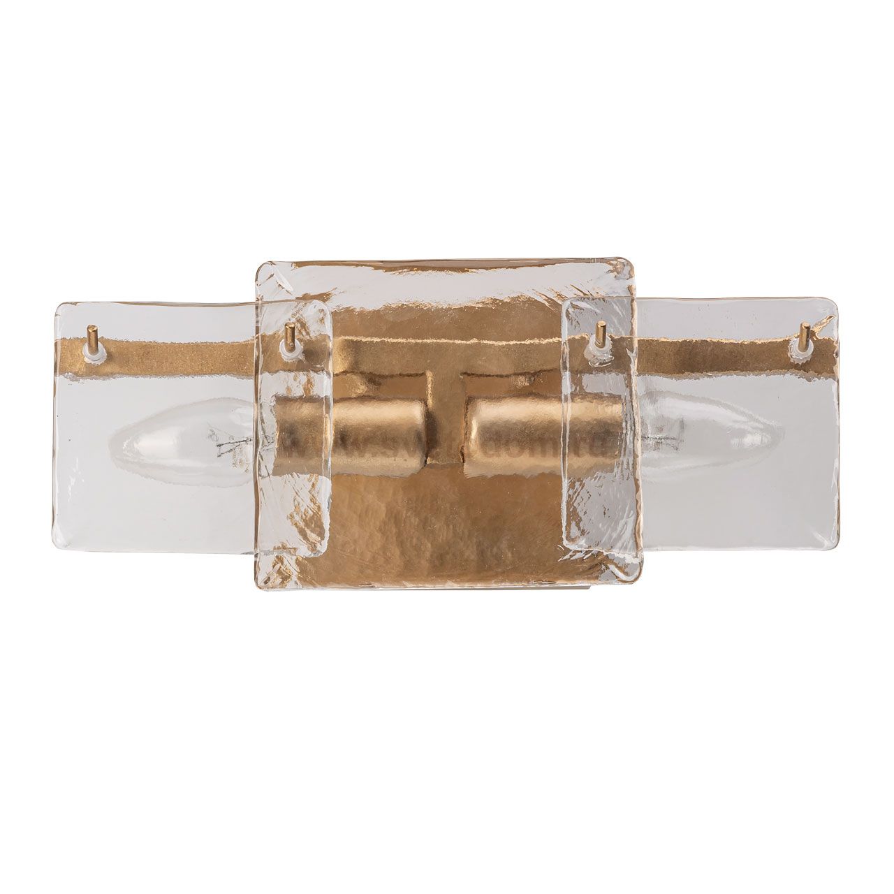 Металлическое основание настенного бра гальванизировано в цвет золота. Горизонтальное бра декорировано плафоном, имитирующим вулканическое стекло Комментарий
