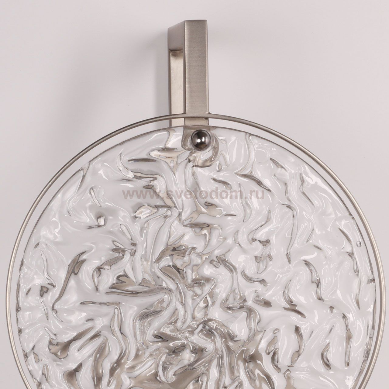 Металлическое основание настенного бра гальванизировано в цвет матового никеля. Декор выполнен из прозрачного фактурного стекла. Комментарий