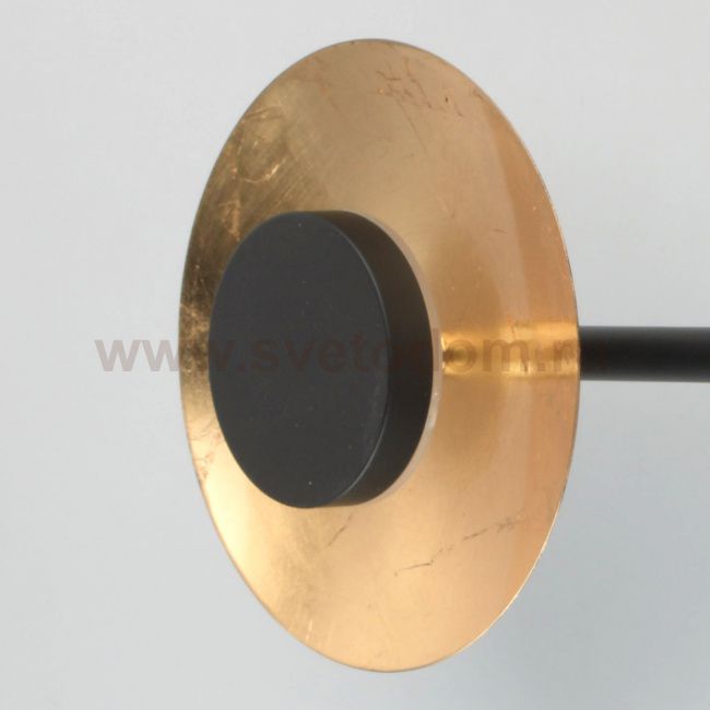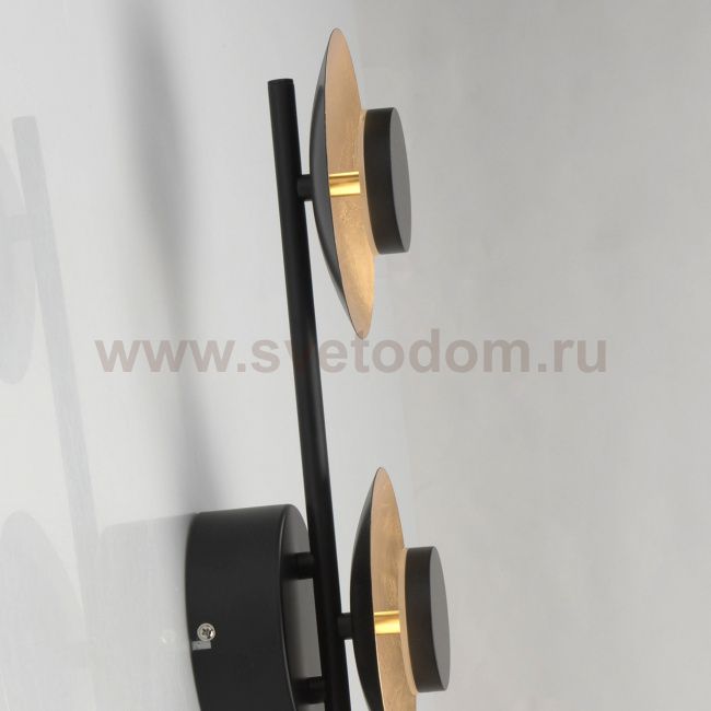 Оригинальный настенно-потолочный светильник будет идеально смотреться в современной обстановке. Металлическое основание матового чёрного цвета подчеркнуто необычными плафонами. Их внешняя часть сделана из металла в тон основанию, а внутренняя выполнена в глянцевом золотом цвете с эффектом поталь. Минималистичная модель смотрится очень эффектно, особенно при включенном свете. |