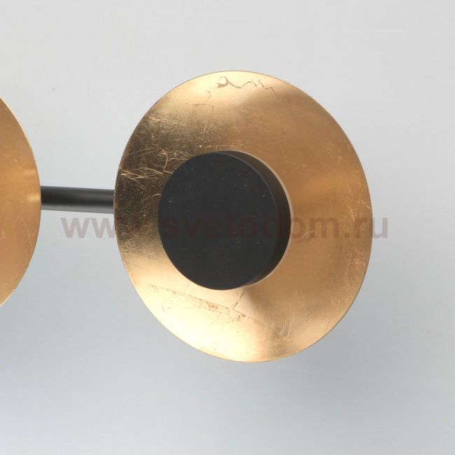 Оригинальный настенно-потолочный светильник будет идеально смотреться в современной обстановке. Металлическое основание матового чёрного цвета подчеркнуто необычными плафонами. Их внешняя часть сделана из металла в тон основанию, а внутренняя выполнена в глянцевом золотом цвете с эффектом поталь. Минималистичная модель смотрится очень эффектно, особенно при включенном свете. |