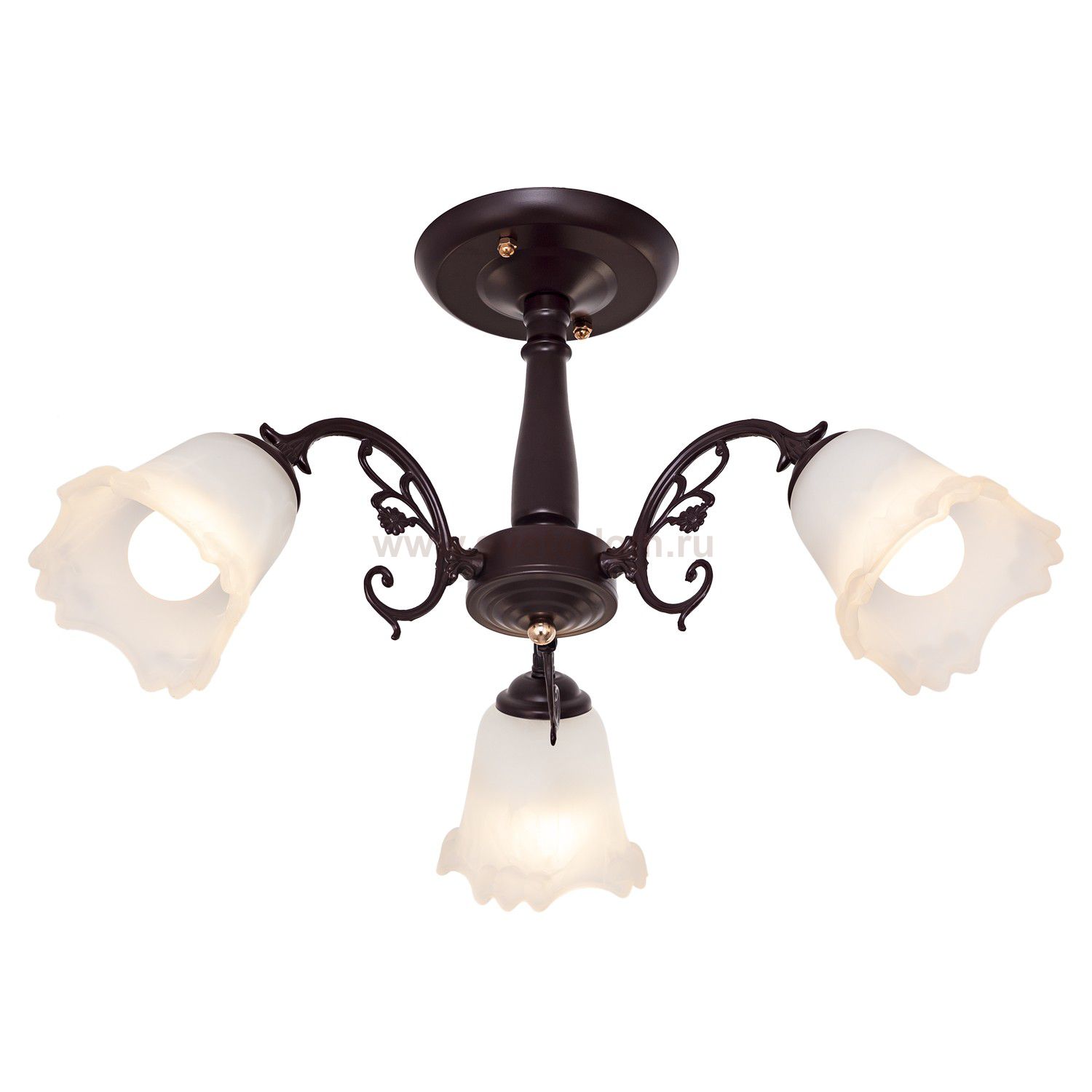 Потолочный светильник 457/3BR WT от бренда ЭкономСвет. Каркас выполнен из материала металл, цвет коричневый. Плафоны (светорассеиватели) выполнены из материала стекло, цвет белый. Цоколь E27 рассчитан на лампы максимальной мощности до 60 Вт, а максимальная площадь освещения составит до 7 м?.