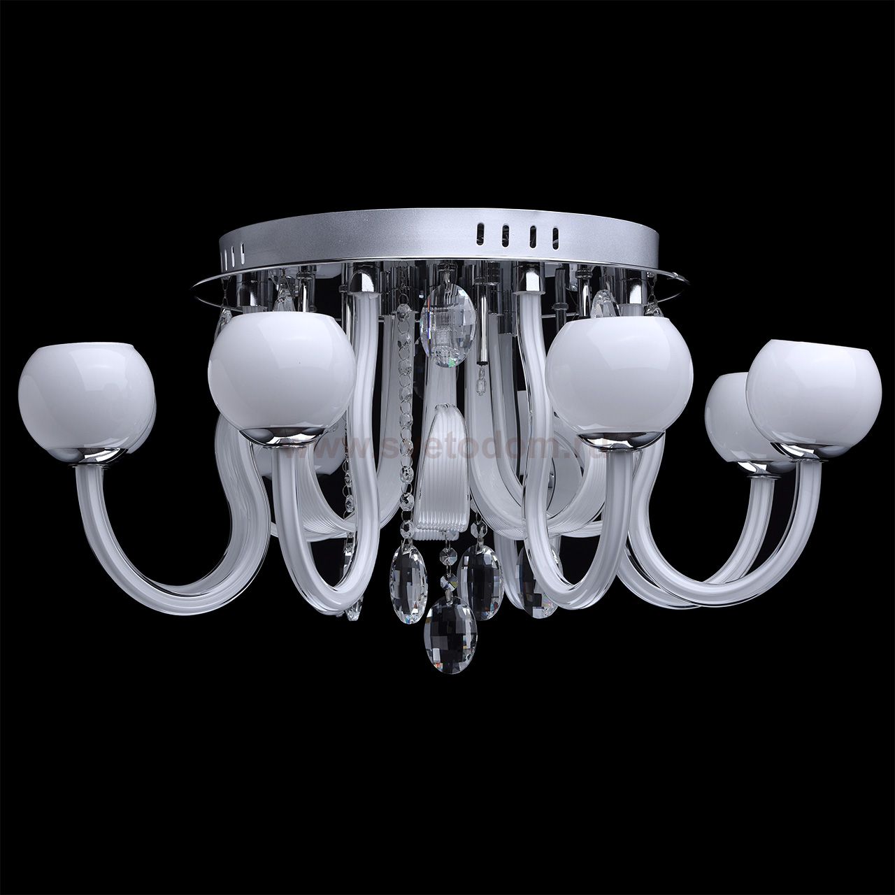 Описание модели 459010220: Необычный дизайн и классическое цветовое оформление светильника из коллекции «Ивонна» позволяют ему удачно вписаться в любой интерьер. Округлые плафоны из опалового стекла подчеркивают минималистичный стиль, в котором выполнено металлическое основание цвета хрома. Изгибы основания удачно дополнены декоративными элементами из окрашенного двойного стекла и хрусталя. Рекомендуемая площадь освещения порядка 26 кв.м.