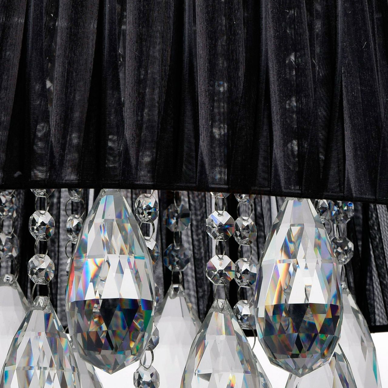 Металлическое основание цвета хрома, абажур из органзы черного цвета, декоративные элементы из хрусталя Место применения