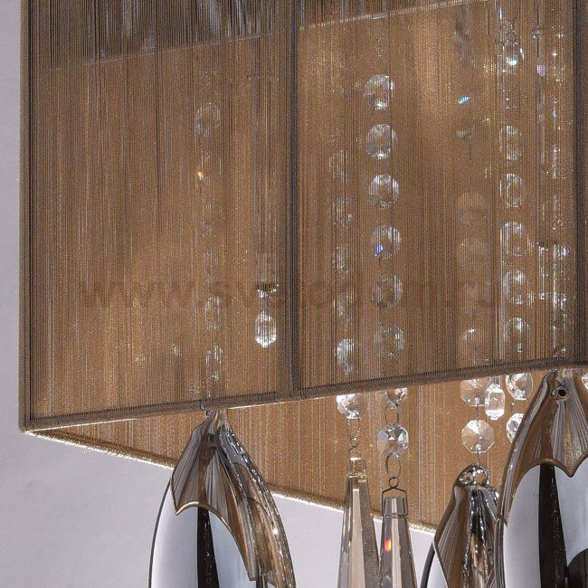 Гламурный светильник с изящным абажуром в интересном цветовом решении. Световой поток оказывается приглашенным в сказочное Зазеркалье между зеркальным основанием и декоративными стеклянными элементами с гальваническим покрытием в виде благородных капель на хрустальных подвесах.
