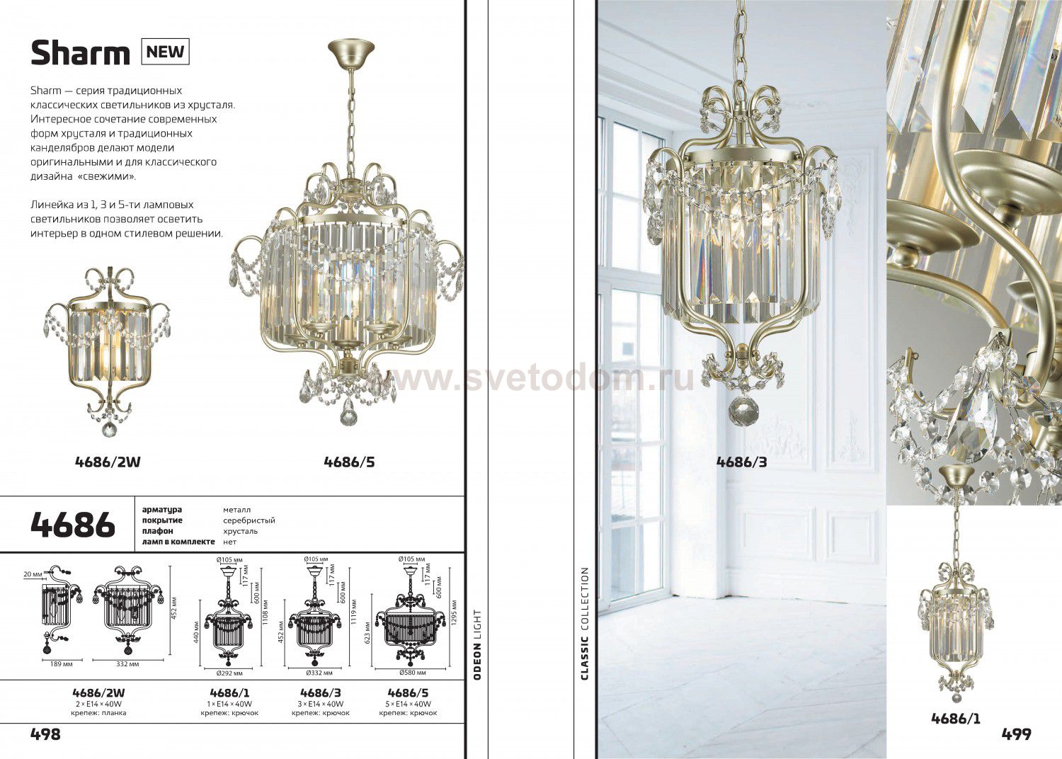 4686/1 CLASSIC ODL20 457 серебристый/хрусталь Подвес E14 1*40W 220V SHARM Штрих-код