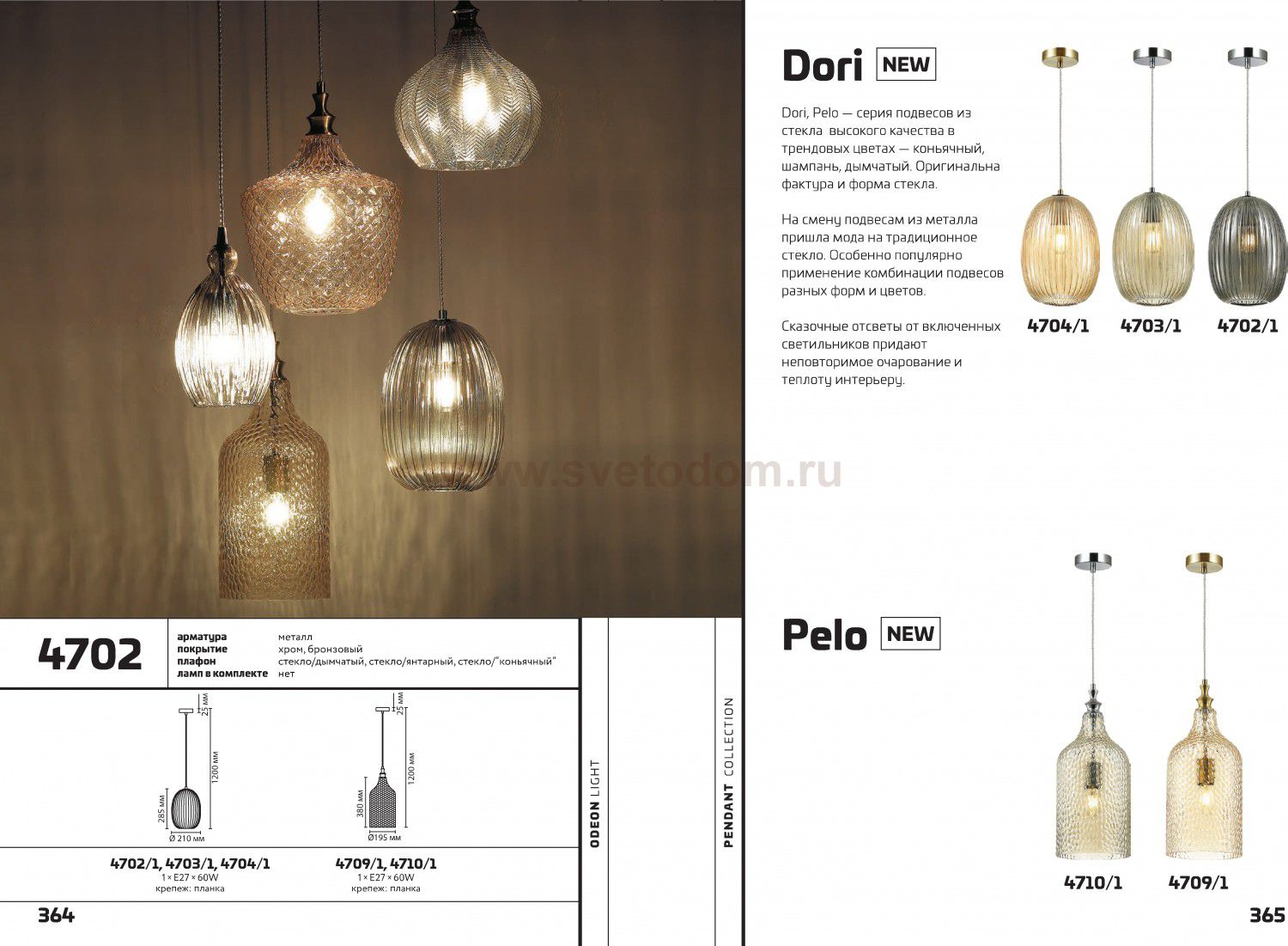 Dori - линия подвесов из стекла высокого качества в трендовых цветах — коньячный, шампань, дымчатый. Оригинальна фактура и форма стекла. На смену подвесам из металла пришла мода на традиционное стекло. Особенно популярно применение комбинации подвесов разных форм и цветов. Сказочные отсветы от включенных светильников придают неповторимое очарование и теплоту интерьеру.
