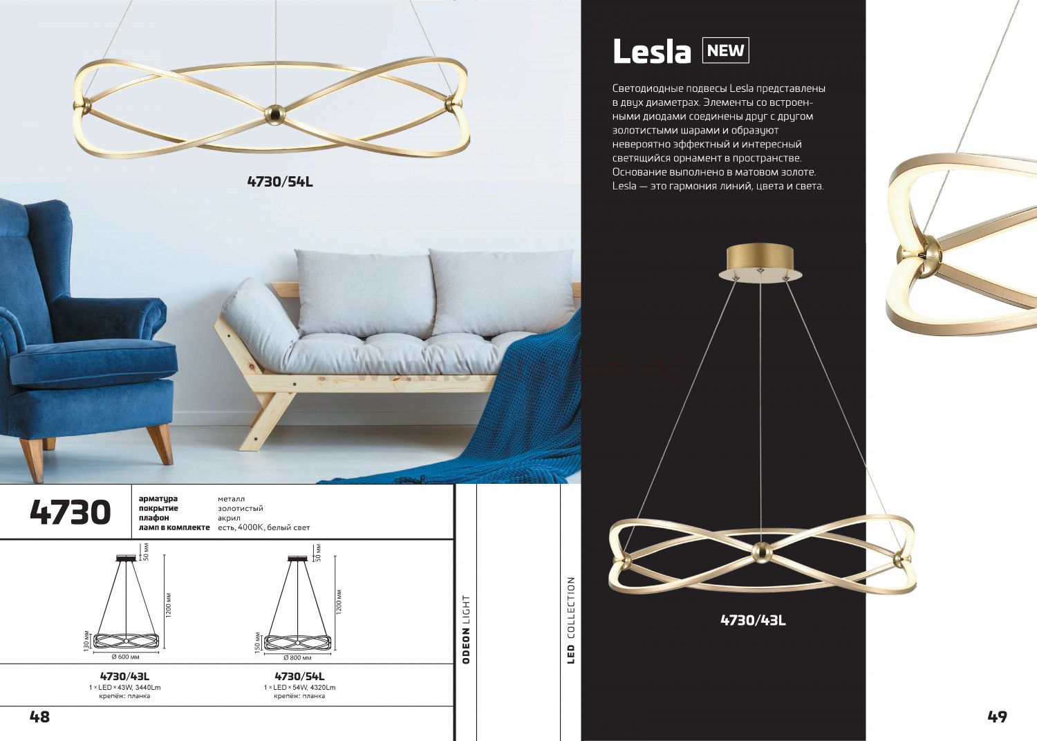 4730/54L L-VISION ODL20 174 золотой/прозрачный Люстра LED 4000K 54W 220V LESLA Штрих-код