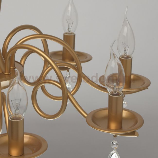 Античная грация и минималистичность современных моделей сочетаются в этой люстре. Металлическое основание классического бронзового оттенка подчеркнуто изящным изгибом рожка и утонченными декоративными подвесами из прозрачного хрусталя. Модель будет прекрасно смотреться в интерьерах, выполненных в стиле неоклассика |