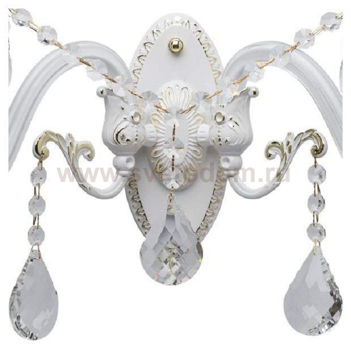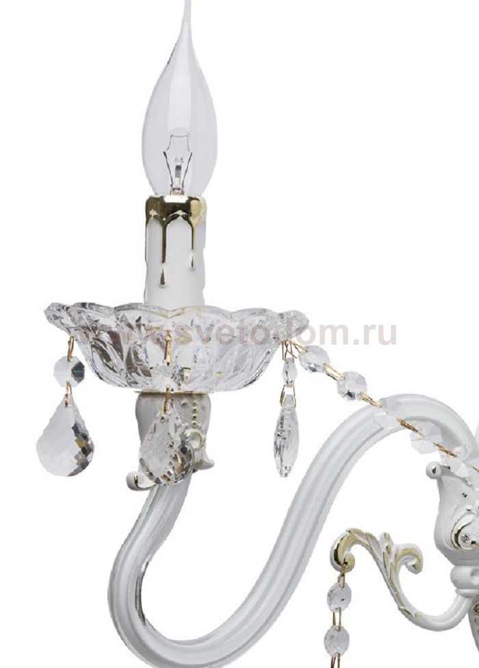 Металлическое основание белого цвет с золотом, рожки из дутого стекла, окрашенные изнутри, декоративные подвески из хрусталя Материал плафона