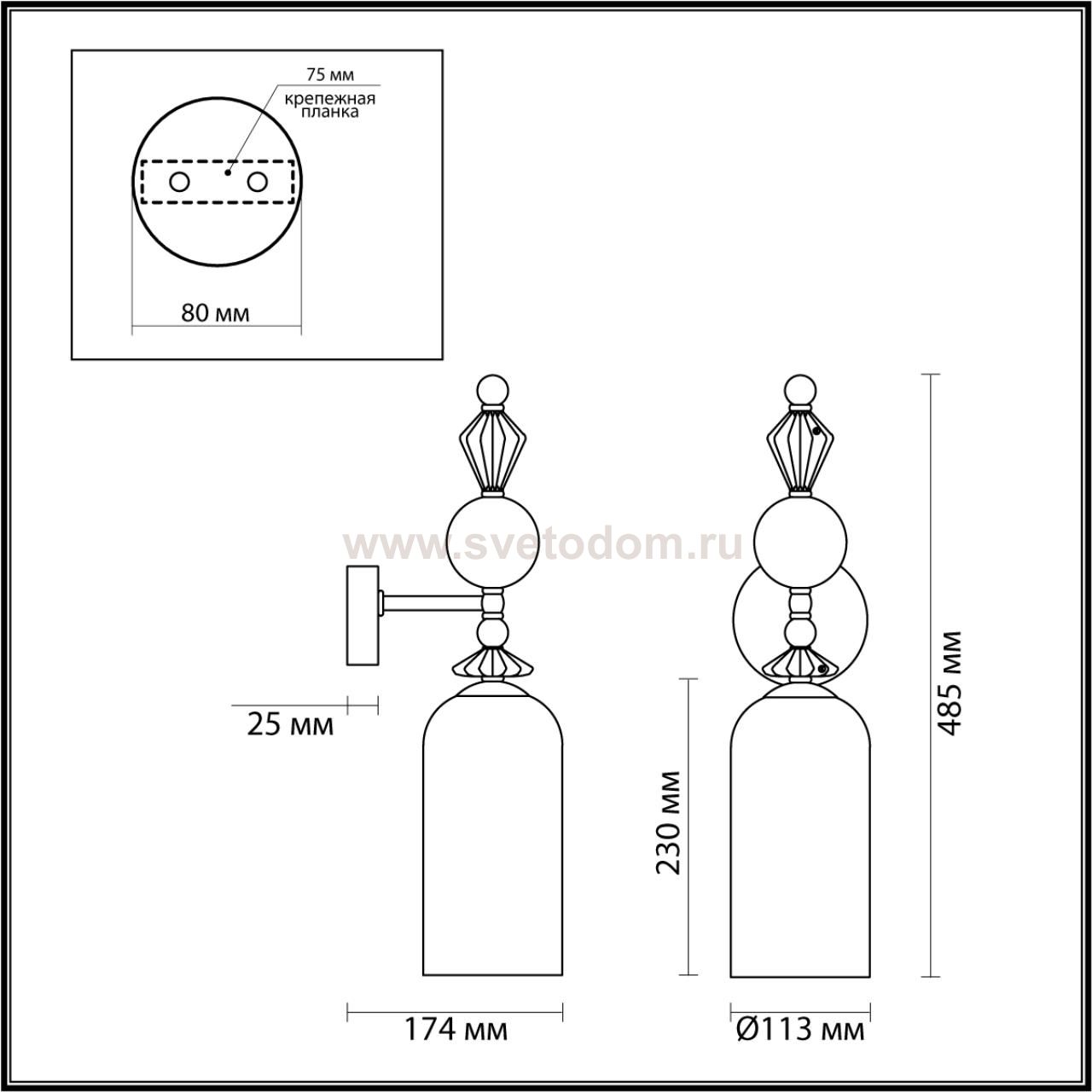 4893/1WA CLASSIC ODL_EX22 33 хром/раноцветн./керамика/стекло Бра E14 1*40W 4893/1WA BIZET Штрих-код