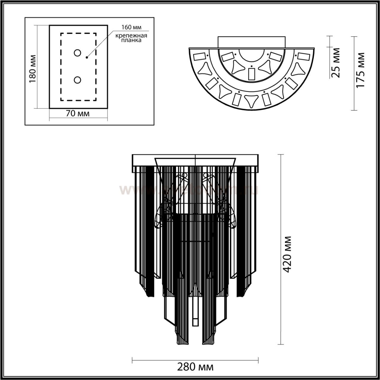 арматура: металл, плафон: стекло, декор: металл Материал плафона