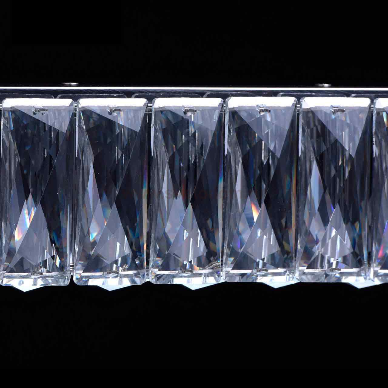 Основание светильника выполнено из нержавеющей стали. С трех сторон корпус светильника декорирован хрусталем квадратной и прямоугольной формы с множественными центрами схождения граней. Комментарий