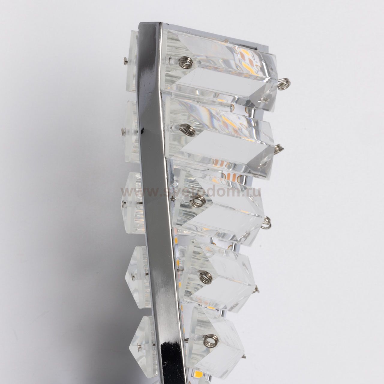 Металлическое основание настенного бра гальванизировано в цвет хрома. Настенное бра декорировано прозрачным хрусталем. Комментарий