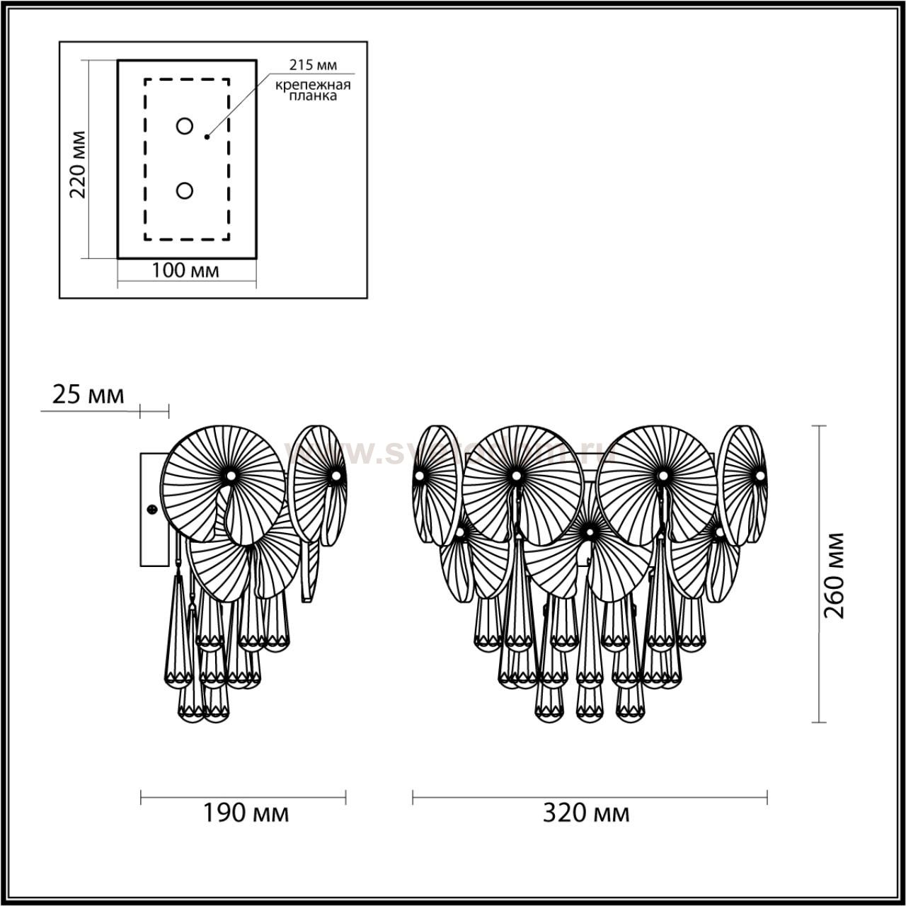 арматура: металл, плафон: хрусталь, декор: хрусталь Материал плафона