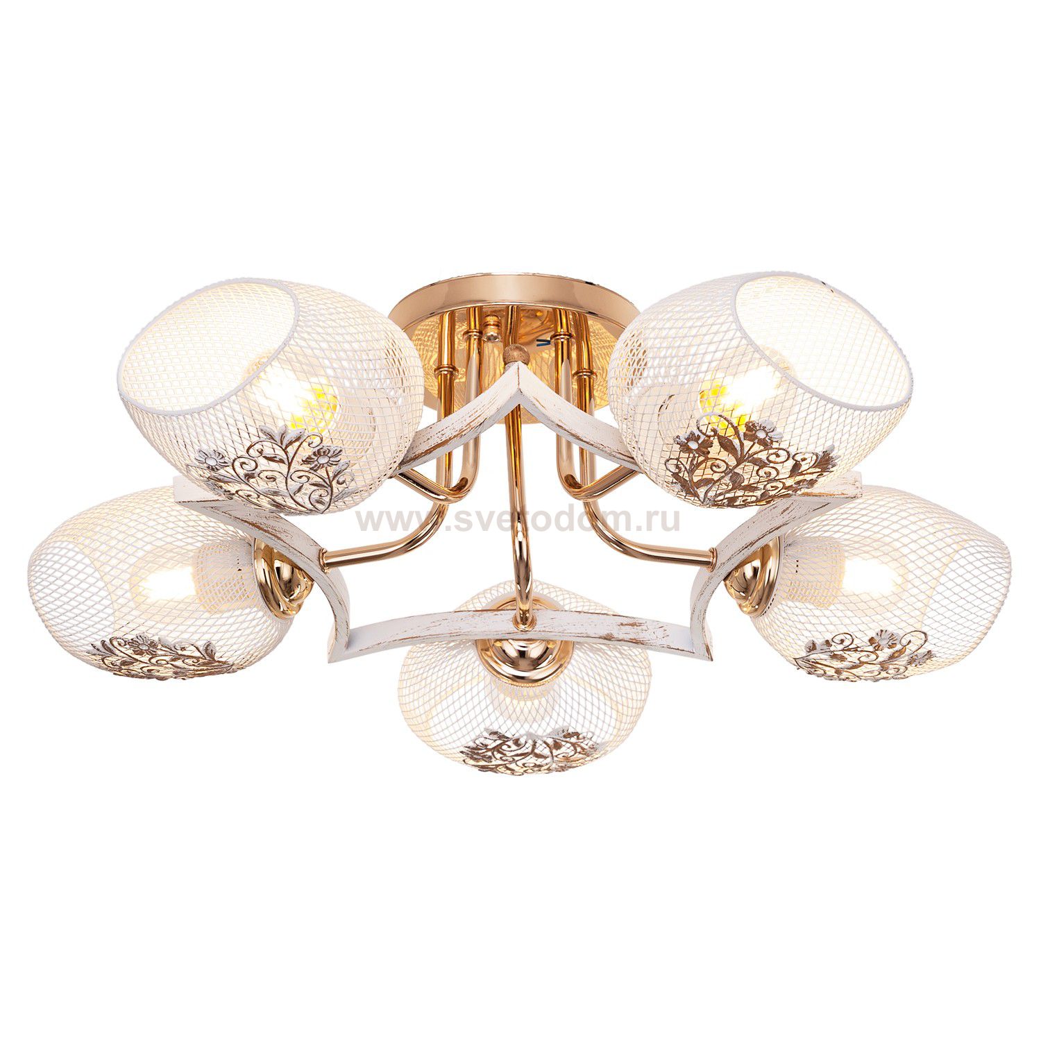 Потолочный светильник 50226/5FGD+WG PNT от бренда ЭкономСвет. Каркас выполнен из материала металл; цвета: золото и античный белый. Плафоны (светорассеиватели) выполнены из материала металл; цвета: античный белый и золото. Цоколь E27 рассчитан на лампы максимальной мощности до 60 Вт, а максимальная площадь освещения составит до 11 м?.