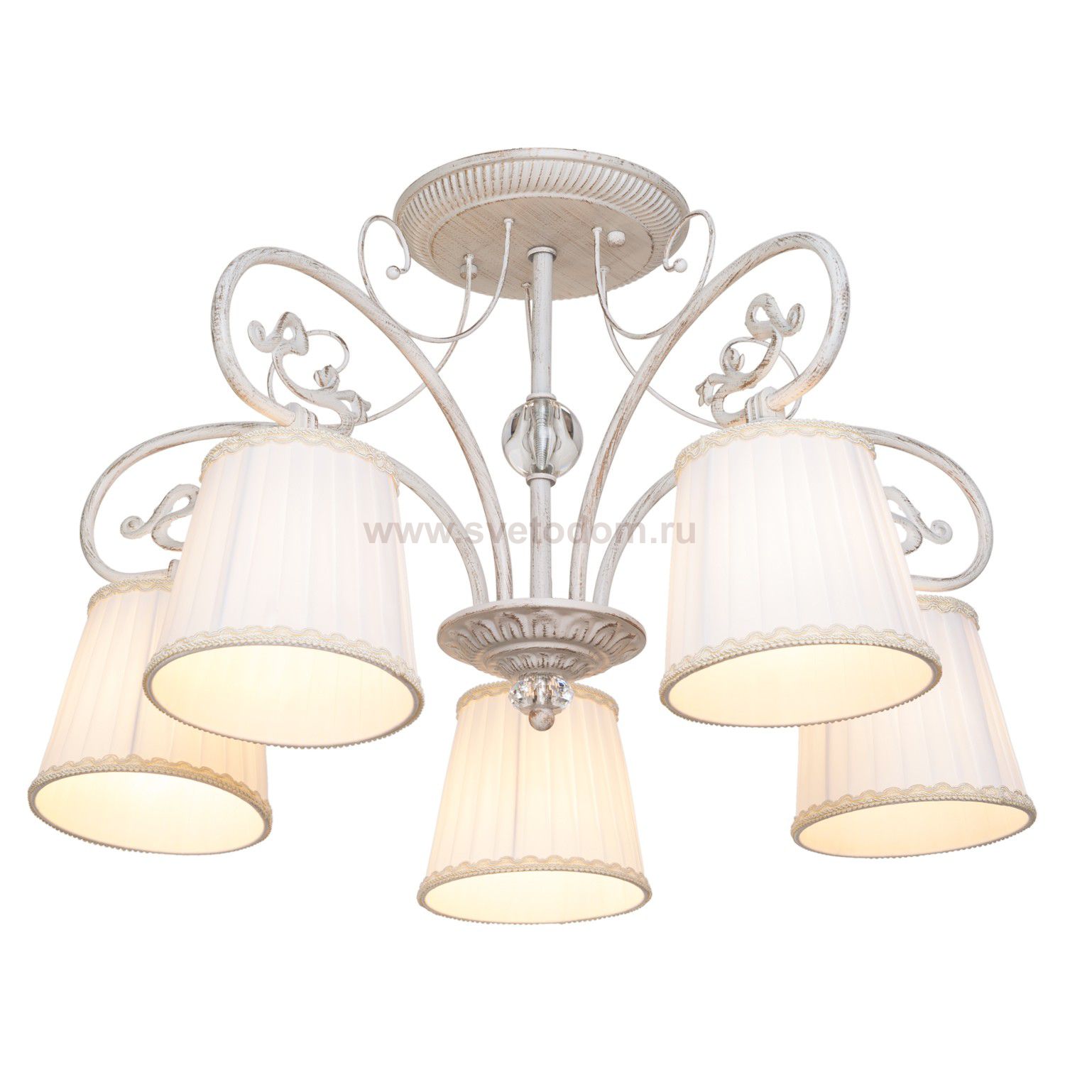 Люстра классическая 50410/5WT WT от бренда ЭкономСвет. Каркас выполнен из материалов металл и стекло; цвета: античный белый и прозрачный. Плафоны (светорассеиватели) выполнены из материала текстиль, цвет белый. Цоколь E27 рассчитан на лампы максимальной мощности до 60 Вт, а максимальная площадь освещения составит до 11 м?.