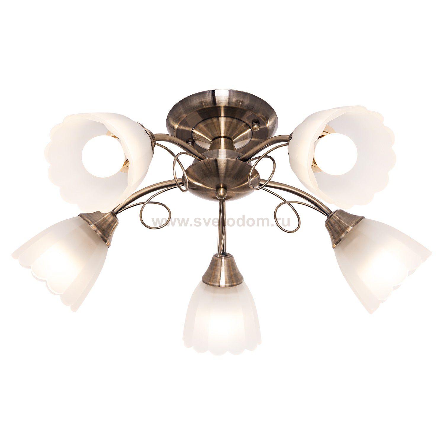 Потолочный светильник 50441/5AB WT от бренда ЭкономСвет. Каркас выполнен из материала металл, цвет античная бронза. Плафоны (светорассеиватели) выполнены из материала стекло, цвет белый. Цоколь E27 рассчитан на лампы максимальной мощности до 60 Вт, а максимальная площадь освещения составит до 11 м?.